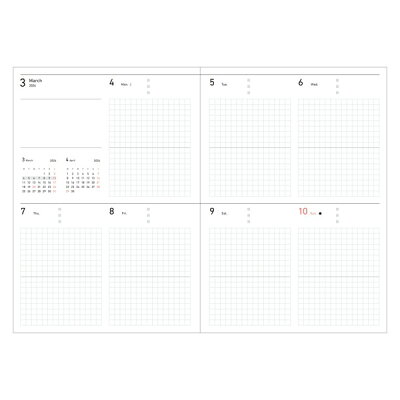 文字やイラストがきれいに書け、1日分がちょうどいい広さの方眼罫なので、書く時間があまりとれなかったり、空きスペースが気になってしまう方にもぴったりです。