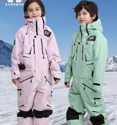 スキーウェア キッズ スノボ 防風 防寒 アウター 冬 アウトドア 男の子 女の子 ジャンプスーツ 子供 襟 高め ポリエステル 中綿 暖かい 保温 防水 透湿 通気性 軽量 フード 裾 ジップアップ 袖口 大きい ポケット