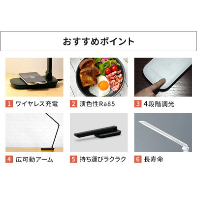 コンパクトに折り畳みも可能です!●商品サイズ(cm)幅約10.5×奥行約39.5×高さ約31●質量約0.5kg●電源コードの長さ1.8m●使用光源LED●定格消費電力(最大点灯時)※4.0W●定格電源電圧/本体定格入力電圧AC100V(50Hz/60Hz)/本体:DC9V●待機時消費電力※0.3W●ワイヤレス充電出力9.0V 1.0A●主な材質本体:ABS樹脂※ワイヤレス充電未使用時(検索用:デスクライト LEDデスクライト 照明ライト 学習机 でんき LED 机 手元 読書 読書灯 勉強 学習 LEDライト 照明 LED照明 デスクライト 卓上ライト スタンドライト 電気スタンド 子ども 充電 平置き 折り畳み Qi充電 置く 充電 ですくらいと 4967576494038 4967576494045)●リアルライムランキング1位受賞!ライト・照明器具>デスクライト・テーブルランプランキング1位(2020/10/26 04:53) ●デイリーランキング1位受賞! インテリア・寝具・収納>ライト・照明器具>デスクライト・テーブルランプ ランキング1位(2020/11/16更新) あす楽対象商品に関するご案内 あす楽対象商品・対象地域に該当する場合はあす楽マークがご注文カゴ近くに表示されます。