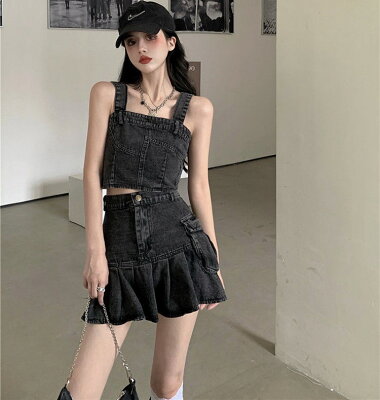 kpop衣装 大人 ダンス衣装 セットアップ レディース デニム セットアップ ダンス衣装 セットアップ レディース 韓国 アイドル 衣装 へそ出し ベスト へそ出し スカート デニムベスト デニムスカート 韓国 高校生 韓国 ダンス 衣装 大きいサイズ S 3XL 発表会