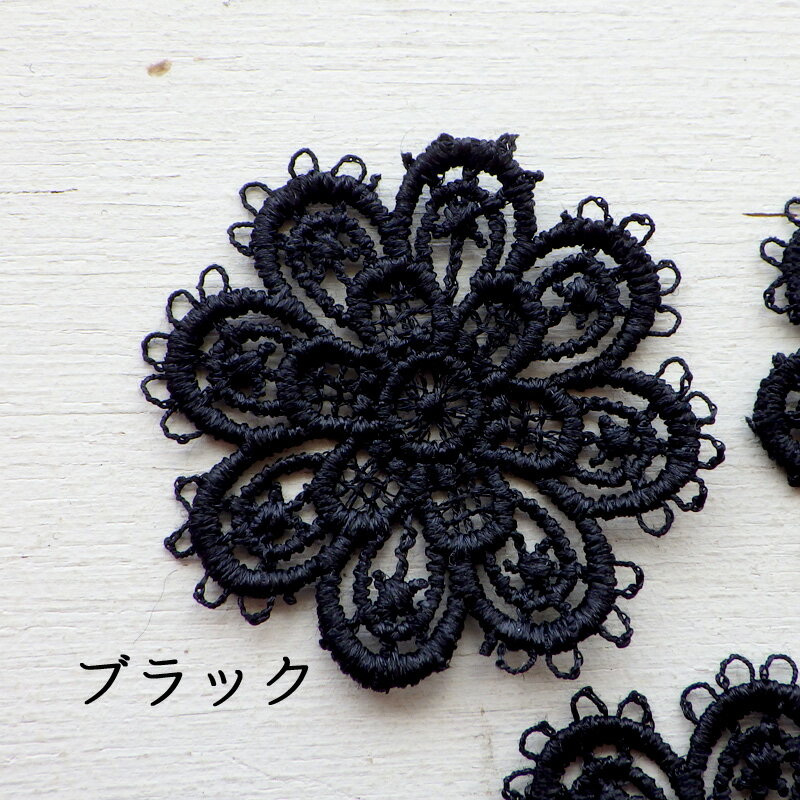 レース モチーフ ケミカルレース ダブルフラワー 直径約50mm 1枚 ホワイト ブラック