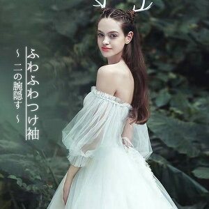 付け袖 二の腕 アームカバー ふわふわつけ袖 ゴム留め ソフトチュール ボレロ 二の腕 隠す レーディス バルーン袖 パーティードレス用 ウェディングドレス用 ワンピース用 ブラック ホワイト 披露宴 二次会 発表会 演奏会 お呼ばれ ブライダル 花嫁