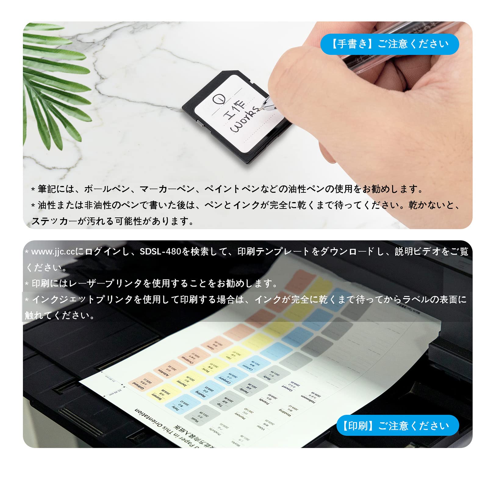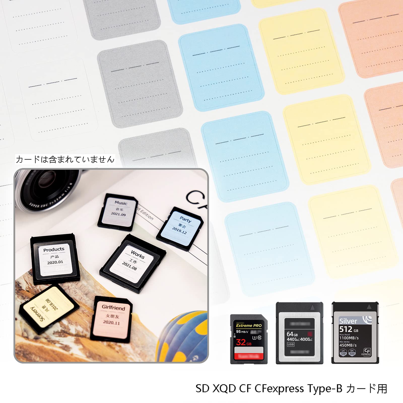 JJC 480枚 印刷可能 ラベルシール SDカードシール SD SDHC SDXC XQD CF CFexpress Type-B カード 調味料ラベル、冷蔵食品用の容器整理用ステッカー 日付シール 取り外しが簡単