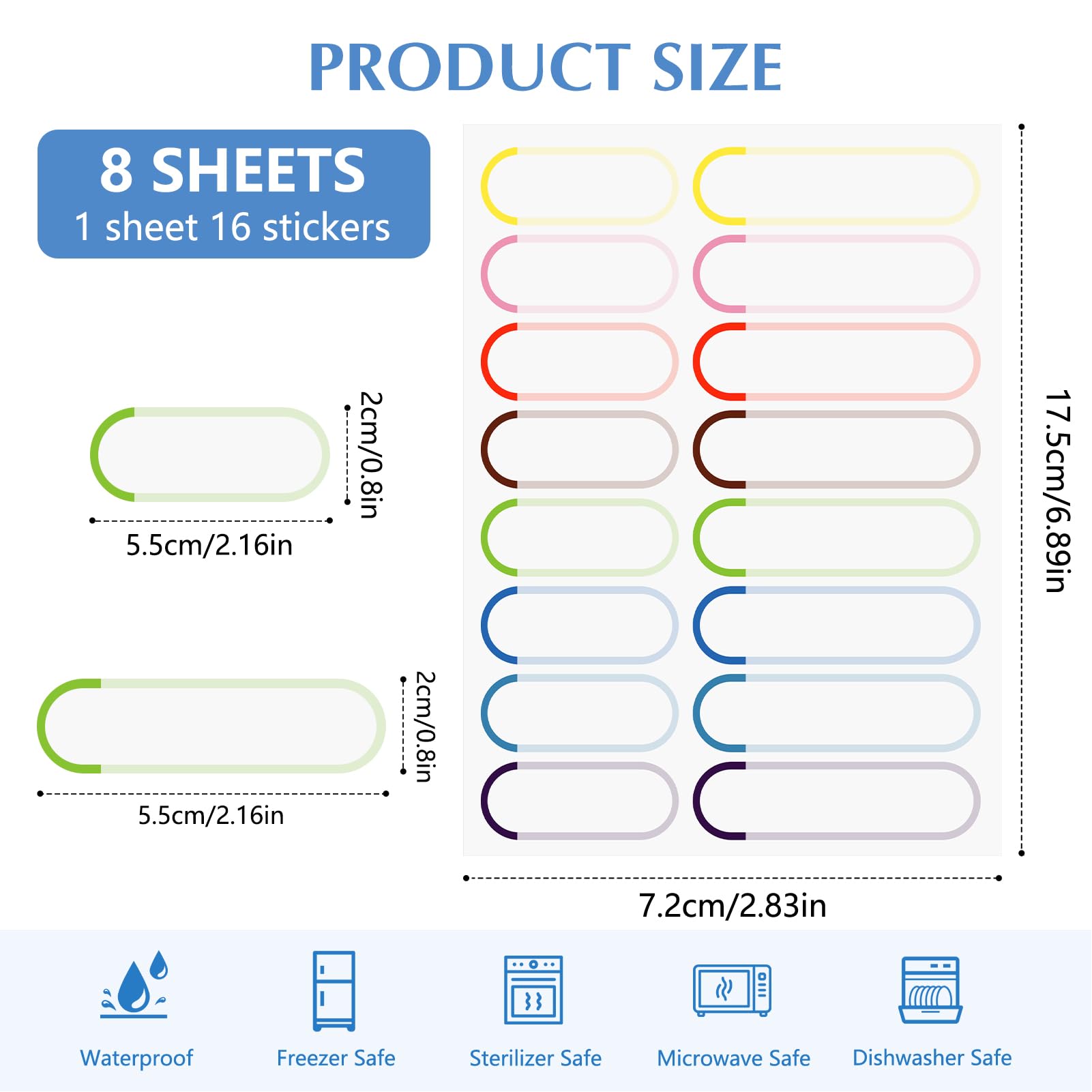 名入れラベル 仕様各シートのサイズ: 11*15cm、各シートには16枚のラベルが含まれています(大ラベル: 6*1.6cm 小ラベル: 4*1.6cm) 合計8シート(128ラベル)が含まれています。