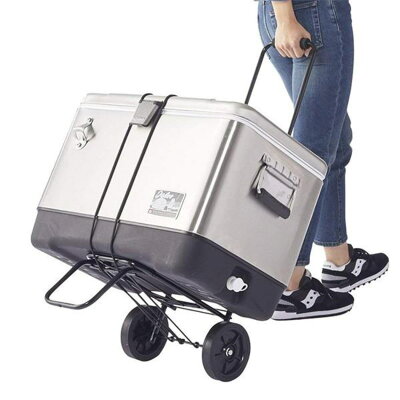 おすすめポイント飲料水の箱やクーラーボックスの運搬が楽になる40kgまでの荷物に耐えられる、軽くて使いやすいキャリーです。