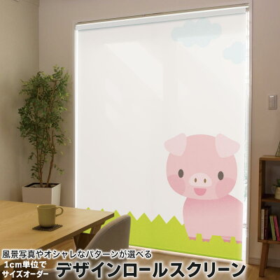 1cm単位サイズオーダー ロールスクリーン ロールカーテン オーダーメイド タチカワ 日本製 間仕切り カーテン 採光 非遮光 目隠し UVカット カーテンレール チェーン式 プル式 007165 ユニーク アニマル ぶた キャラクター