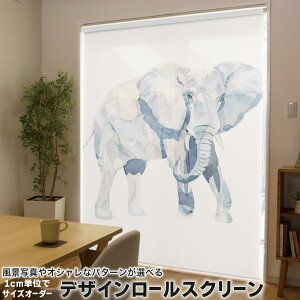 1cm単位サイズオーダー ロールスクリーン ロールカーテン オーダーメイド タチカワ 日本製 間仕切り カーテン 採光 非遮光 目隠し UVカット カーテンレール チェーン式 プル式 017544 アニマル ゾウ 像 アニマル