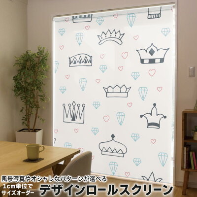 1cm単位サイズオーダー ロールスクリーン ロールカーテン オーダーメイド タチカワ 日本製 間仕切り カーテン 採光 非遮光 目隠し UVカット カーテンレール チェーン式 プル式 011311 王冠 ハート 宝石