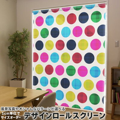 1cm単位サイズオーダー ロールスクリーン ロールカーテン オーダーメイド タチカワ 日本製 間仕切り カーテン 採光 非遮光 目隠し UVカット カーテンレール チェーン式 プル式 005468 チェック・ボーダー カラフル 模様 水玉