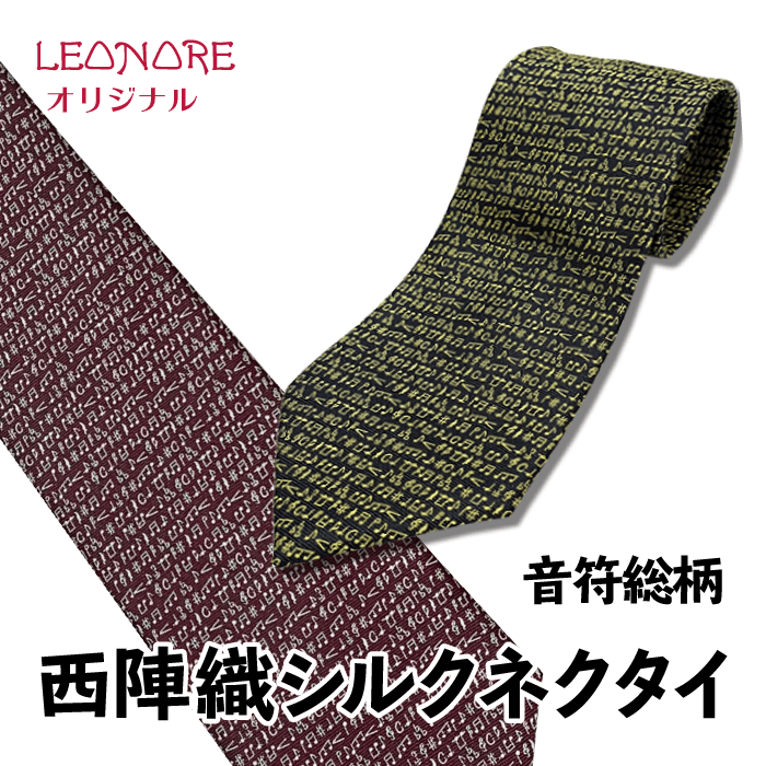 ●サイズ: H142×W8.5cm ●材質:絹100% ●日本製・西陣織 ●JAN:音符総柄 ブラック 4589946374629 :音符総柄 ワイン 4589946374636 ※ラッピングについて ギフト箱包装(110)円をご選択いただいた方は、受注後ご請求金額を変更いたします。