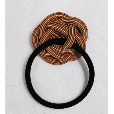 ヘアーゴム 水引飾り 絹巻きブラウン 髪飾り 水引アクセサリー 昔から縁結びの由来の水引飾り 一つ一つ丁寧に手作りしています。